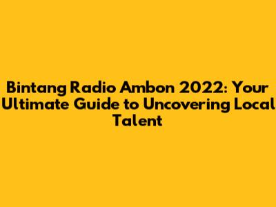 Bintang Radio Ambon 2022: The Ultimate Guide
