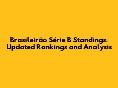 Brasileirão Série B Standings: Updated Rankings And Analysis