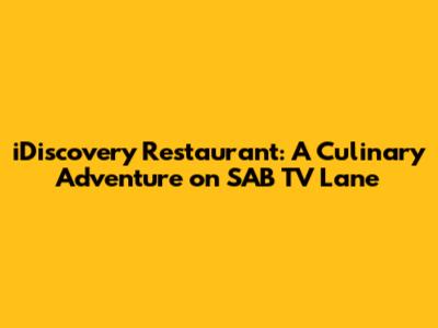 IDiscovery Restaurant: A Culinary Adventure On SAB TV Lane