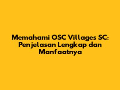 Memahami OSC Villages SC: Penjelasan Lengkap Dan Manfaatnya