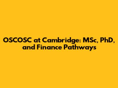 OSCOSC At Cambridge: MSc, PhD, And Finance Pathways