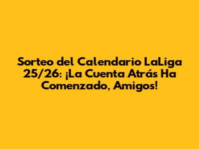 隆As铆 que ya lo sabes, amigos! El sorteo del calendario de LaLiga 25/26 est谩 a la vuelta de la esquina. Prep谩rense para una temporada llena de emociones, goles y partidos inolvidables. Sigan los consejos que les hemos dado para no perderse ning煤n detalle del sorteo y para estar listos para disfrutar de cada momento de la nueva temporada. 隆LaLiga nos espera con los brazos abiertos, y nosotros, como buenos aficionados, estaremos ah铆 para vivir cada instante! La temporada 25/26 promete ser emocionante y llena de sorpresas. Los equipos se est谩n preparando para competir al m谩ximo nivel, y los aficionados esperan ansiosamente ver a sus 铆dolos en acci贸n. El sorteo del calendario es el primer paso hacia una temporada llena de emoci贸n y de pasi贸n. Prep谩rense para celebrar los goles, para gritar de emoci贸n y para disfrutar del mejor f煤tbol del mundo.