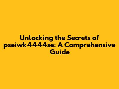 Unlocking The Secrets Of Pseiwk4444se: A Comprehensive Guide